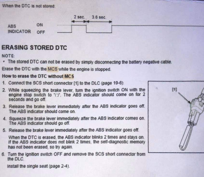 6)..Not for all bikes – ABS problems can be caused by a broken ABS sensor wire near the front forks that is fatigued from turning.