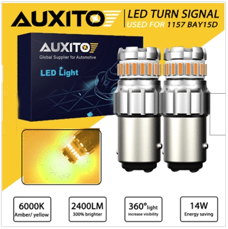 I replaced my front turn signal 1157 bulbs with: Auxito 1157 Amber 1200 lumens 6000K