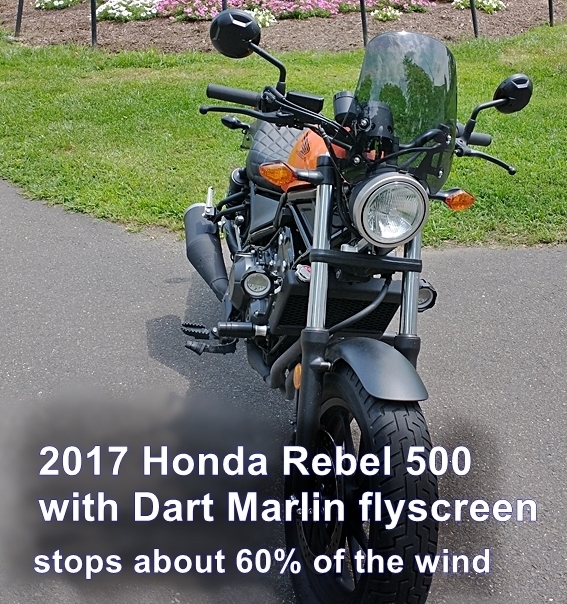 I put a Dart Marlin flyscreen on my Rebel 500. Compared to the smaller Dart Classic, it is wider and 3.2 inches taller.