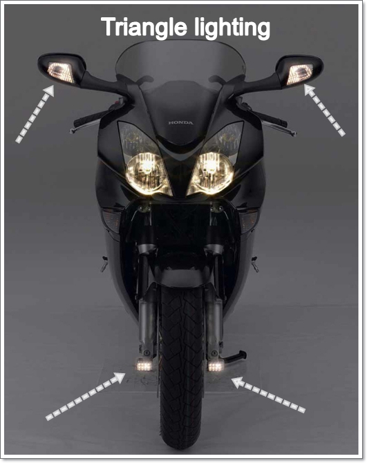 7) Add Triangle lighting to your motorcycle. It makes your motorcycle much more noticeable to on-coming cars.