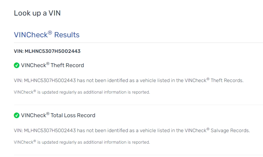 VIN: MLHNC5307H5002443 … Most VIN check sites required payment, but I got some information at the free sites: