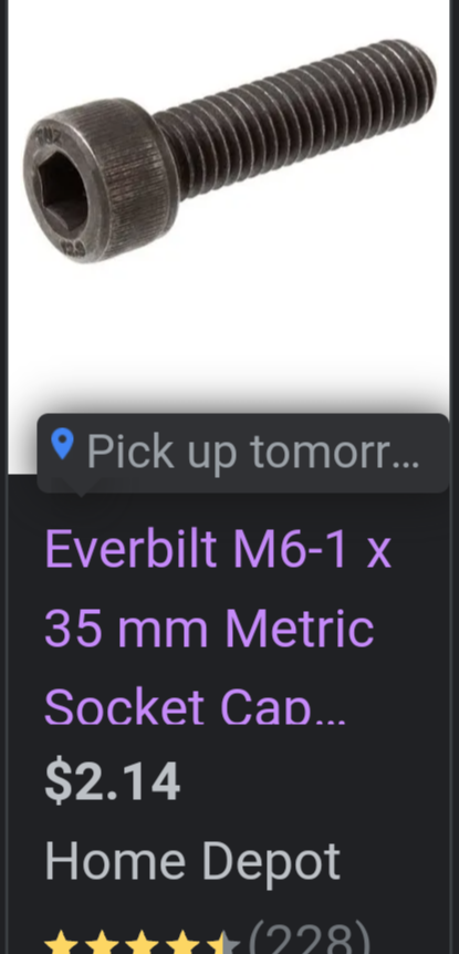 part G) Home Depot: ______________ two 1/4″ (6mm) ID x 13/16″ (21mm) OD washers (3/4″ (19mm) OD is OK)