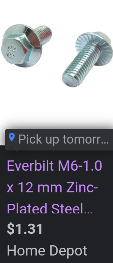 2)..Lowe’s Item #16737 Model #LMINIBRACKETD .. $2.97 USD Installation order: gas tank bolt, U bracket, spacer A, original washer.