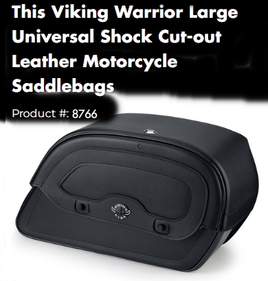 • (from another site) I use the Viking Axe universal throwover bags – really well made and easy on/off. They expand if you need to carry more stuff. Not the prettiest but very efficient. Any universal bags you get will probably need a set of saddlebag stays to keep them out of the wheel and off of the shocks – you can get some solid ones on eBay for around $100