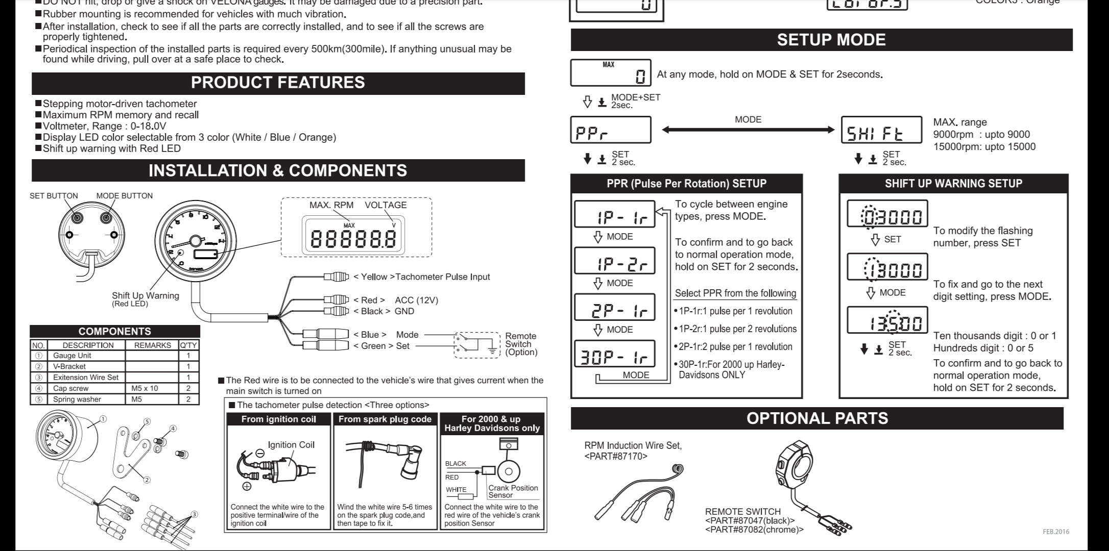 If you do not want to connect the tach to the ECU/coil, you can order an optional induction cable set ($8.41 USD) for determining the engine speed.