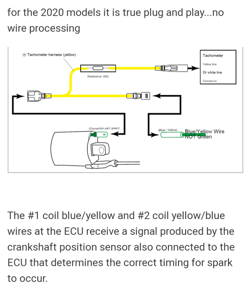 For the 2020-up models, the harness directly plugs into the ignition coil (green wire).