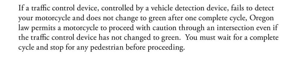 •Check your laws – some states allow you to go after you have sat through 2 or 3 cycles. Also at lights try to stop on the lines that go around the sensors.